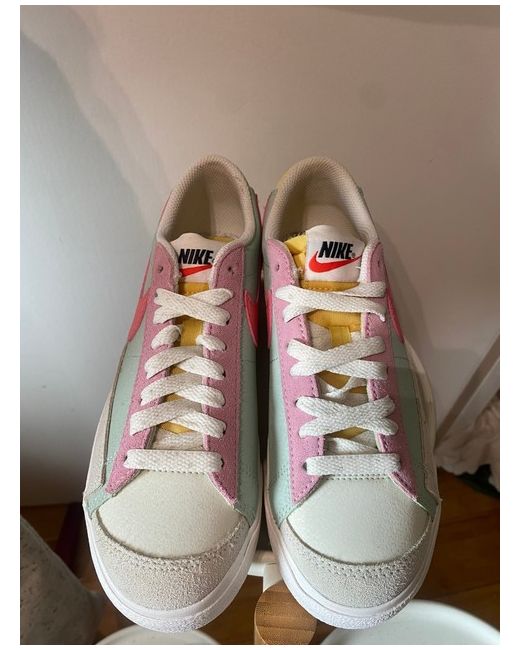 Nike Blazer Trainers. Utterly gorgeous trainers in multicoloured pastel tones, perfectly suitable for any age. They feature leather and suede uppers, foam tongue and rubber outsole. Look great with skirts, dresses, shorts or denims. UK 3.5 (US size 6.5, EU size 36.5) I would say they would also fit a small fitting UK 4. BNIB.