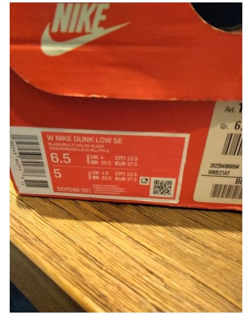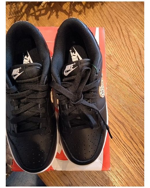 The Nike Dunk Low SE in UK size 4 is a stylish and comfortable trainer designed for women. Featuring a low top shaft style and lace-up closure, these black sneakers are perfect for casual occasions in the spring season. Made with leather upper material and a rubber outsole, they offer a standard shoe width and are branded with Nike's iconic logo accents. Whether you're looking for a casual yet fashionable shoe option, these Nike Dunk Low SE sneakers are a great choice for everyday wear.