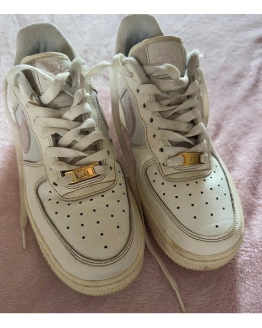 They are white with a lace-up closure and made of leather. Barely worn just been sat under the stairs for about 2 years now.