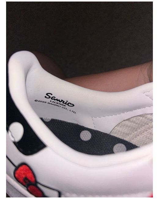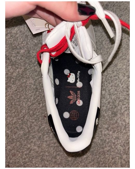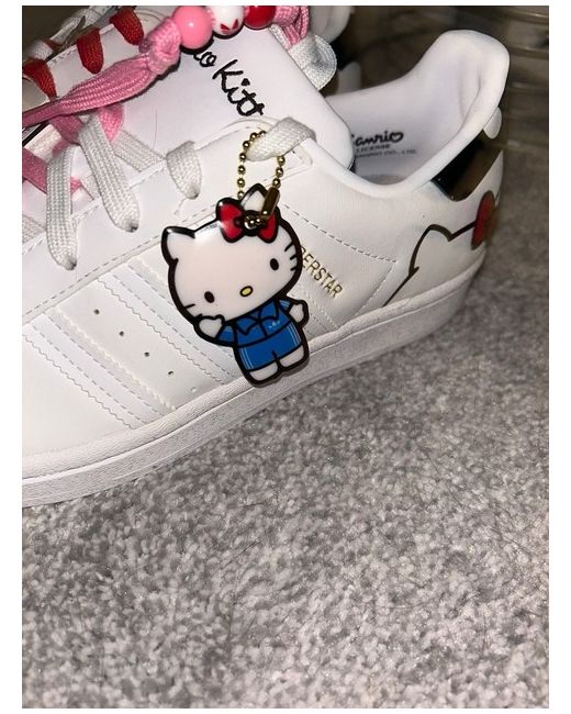 The Adidas Superstar Hello Kitty Edition in size 5 is a stylish trainer designed for women. This low top sneaker features a white colour with Hello Kitty character details, making it a playful and feminine choice. With a lace-up closure and the iconic Adidas Superstar model, this shoe combines comfort and style for a trendy look. Perfect for adding a touch of fun to any outfit, this shoe is a unique addition to any fashion-forward individual's collection.