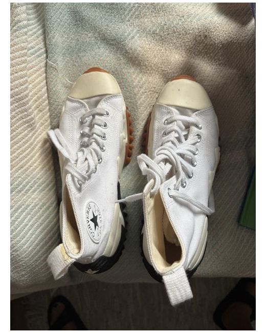 The product is a women's Converse All Star trainer in white, featuring a classic lace-up closure and made of canvas fabric with a rubber outsole. It offers comfort and is ideal for casual occasions during the summer season. The shoe does not have any customised accents or vintage style, but it does have the iconic Converse logo and star-themed design. This standard-width sneaker is part of the Converse Chuck Taylor All Star product line, making it a timeless and stylish choice for everyday wear.