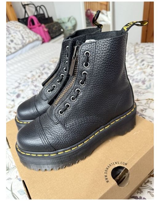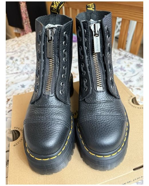 The Dr. Martens Sinclair Women's Boot in size 4 UK is a stylish and versatile ankle boot, perfect for a casual occasion. With a round toe shape and low heel height, it offers comfort and practicality. Made from black leather with a rubber outsole, this platform boot combines durability with a trendy design. The iconic Dr. Martens brand and standard shoe width make it a timeless choice for the spring season.