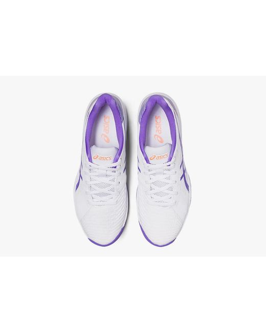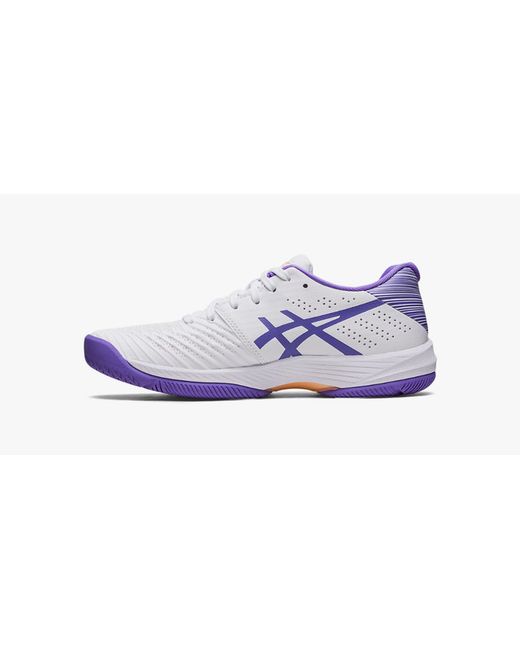 The ASICS Solution Swift FF trainers in White/Amethyst, UK women's size 5, are designed for active women looking for comfort and style. With a low top, lace-up closure, and cushioned foam insole, these sneakers provide a secure and comfortable fit for activities like gym training, tennis, walking, and netball. Made of synthetic materials with a breathable lining, rubber outsole, and logo accents, these trainers are lightweight and perfect for the summer and spring seasons. Perfect for women who value both performance and fashion in their footwear.