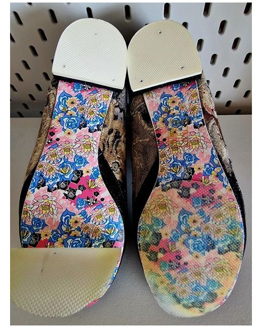 These have sole protectors on, and I have just pulled one back to photograph the sole so you can see that they are still unworn and pristine in their original box.