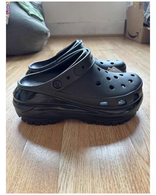 BNWT, never worn only tried on. Size women’s 8 or men’s 7 UK. (Size on the bottom of the shoe is US.) UNISEX shoe perfect for summer holiday shoe! Platformed shoe with shiny texture. Brought from schuh, RRP £79.99! Selling these and three other pairs as they are too big. #holiday #crocs #sandals #summer #clogs