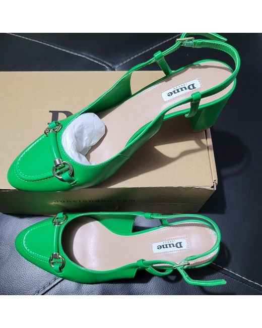 These Dune London Women's Slingback Heels in size 8/41 are a stylish addition to any woman's wardrobe. Made from green leather, these heels feature a classic slingback style with a standard shoe width, making them comfortable for all-day wear. The sleek design is perfect for the summer season, adding a pop of colour to any outfit. Personalisation is not available, but the brand's reputation for quality and elegance ensures that these heels will make a statement wherever they are worn.