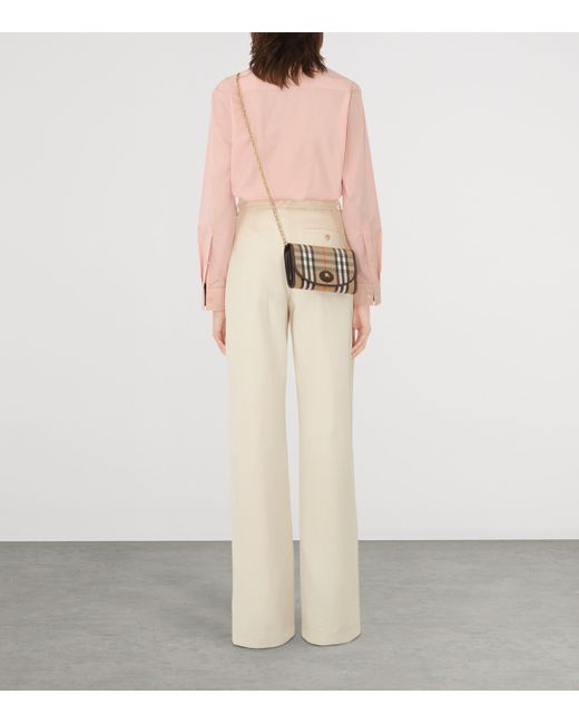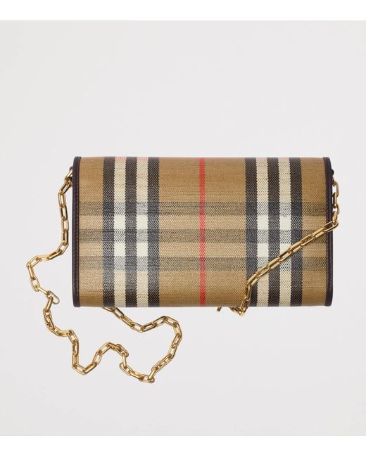 Made for modern functionality with a historic thread, this wallet features a jacquard-woven Burberry Check with a weatherproof coating and smooth leather trims. Carried by a crossbody chain or slipped into your bag, it's a versatile piece finished with the Equestrian Knight Design - a storied symbol from the House archive.