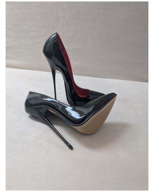 womens extreme high heels in black patent leather and a heel height of 16cm
