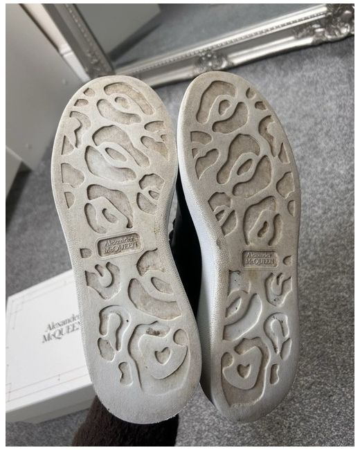 The Alexander McQueen Women's Trainers in size 7 are a stylish and versatile addition to any wardrobe. With a classic black and white colour scheme and a trendy lace-up closure, these trainers feature the signature oversized design of the brand. Made from luxurious leather, both the upper and insole materials provide comfort and durability. The trainers are perfect for a designer-themed look, suitable for casual wear or to elevate any outfit. Come with box and extra laces bought from selfridges couple years ago for £420