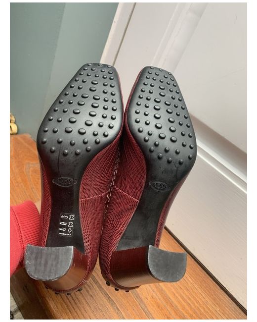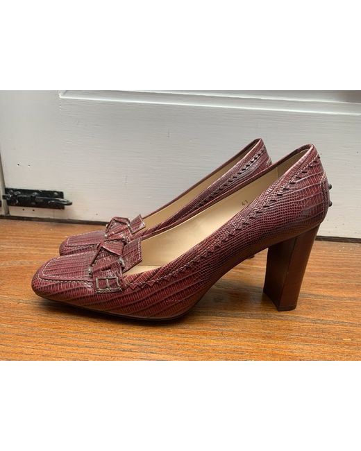 These Tod's Red Python Leather Square Toe Loafer Pumps in size 41 UK 7 are a stylish and versatile choice for any occasion. Made in Italy from high-quality leather, these slip-on pumps feature a square toe shape and a comfortable standard shoe width. The rich burgundy colour adds a touch of sophistication, making them suitable for parties, cocktails, casual outings, formal events, or even business meetings. The classic court style and leather lining and insole ensure both style and comfort, making these pumps a timeless addition to any woman's wardrobe.