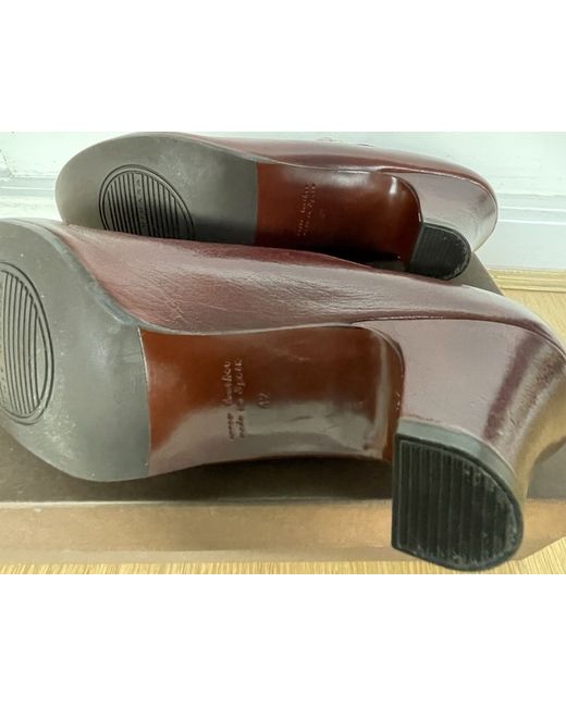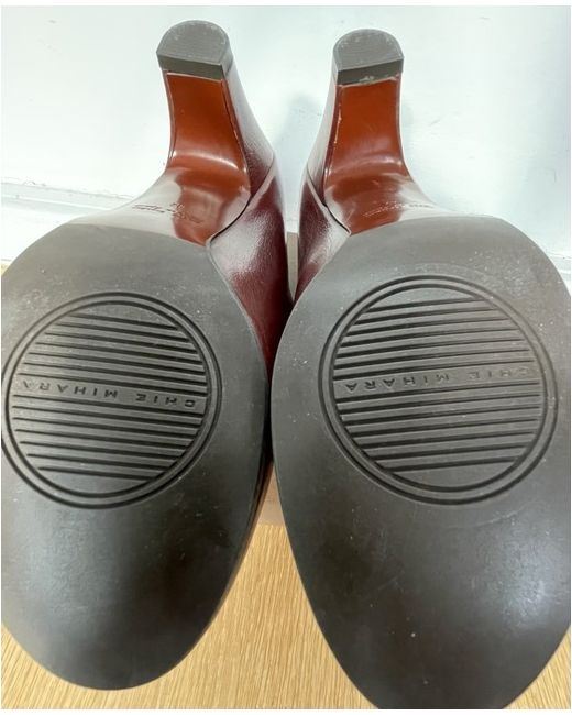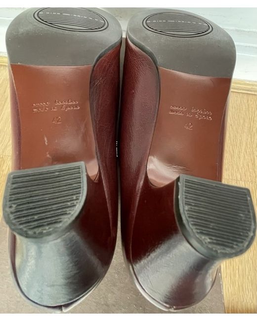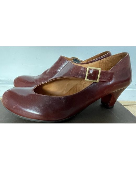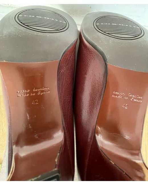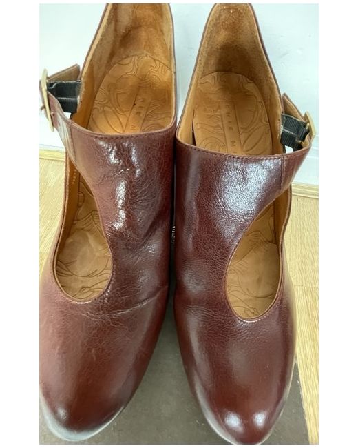Statement shoes! Fabulous supple leather side buckled. Walkable mid heels. Worn in the house once hence some slight marking showing the softness of the leather. Round toe lovely brown leather with dust bag and spare heels. Lovely condition. Please ask any questions as no returns.