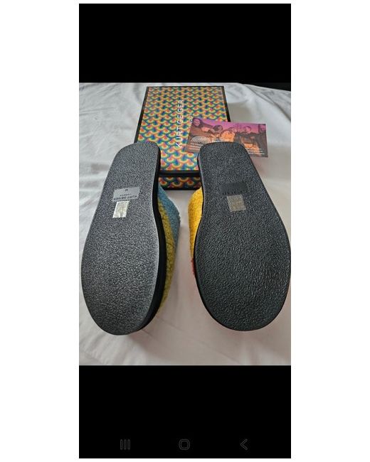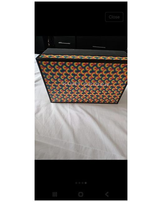 The Kurk Geiger multicoloured slippers in size 7 are a stylish and comfortable choice for women looking for a cosy yet chic footwear option. Made with a flat heel and fabric upper material, these slippers feature a unique multicoloured design that adds a playful touch to any outfit. Perfect for lounging around the house or running quick errands, these slippers combine fashion and functionality for a versatile addition to any wardrobe.