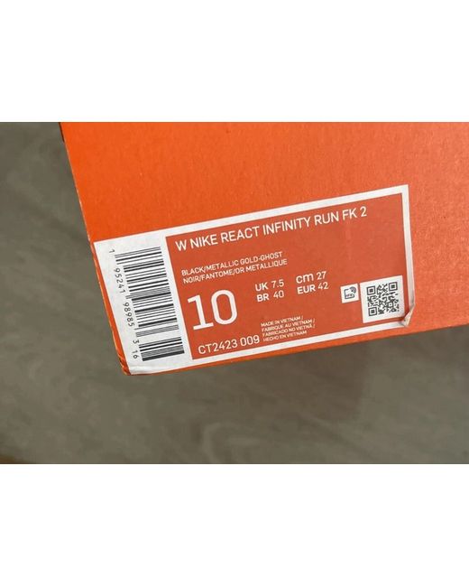 The Nike React Infinity Run Flyknit FK 2 trainers are available in UK size 7.5, US size 10, and EU size 42. The black and gold colour combination is perfect for any occasion, from activewear to casual wear.