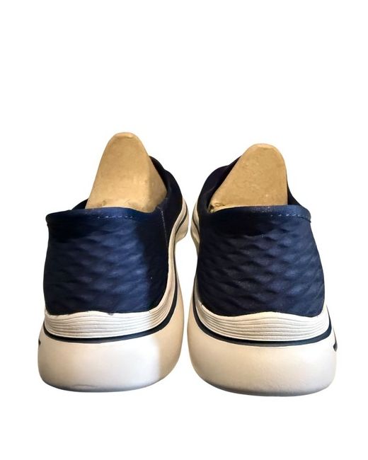 The product is a pair of brand new in box Sketchers slip on trainers for women in navy blue and white, designed in a low top style. With a UK size 6 and a matching US size 10 and EU size 39, these trainers are perfect for casual occasions and walking activities. The outsole is made of rubber with a standard shoe width, making them comfortable and suitable for all seasons. Featuring the Sketchers logo accents, these sneakers are a stylish and practical choice for everyday wear. Feel free to ask me any questions Thanks for looking!