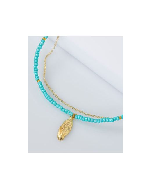 Dainty seed beads and a feather charm decorate this sweet double chain ankle bracelet.