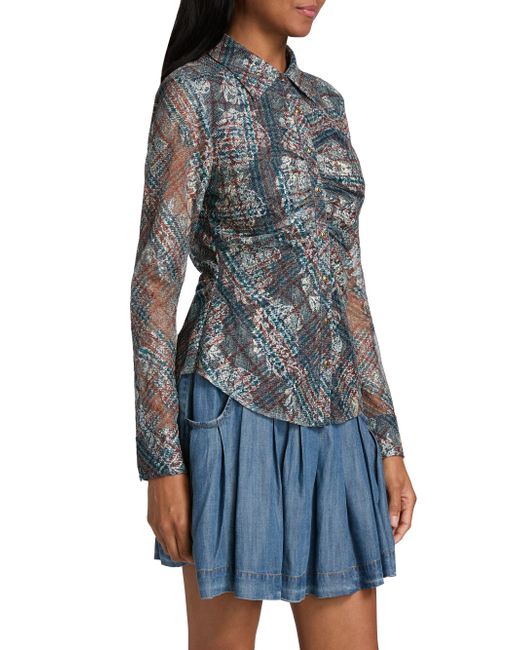The Plaid Hamilton shirt from Ramy Brook features a tailored silhouette with front gathered detailing and a slightly flared hem. Spread collar Long sleeves Button-front closure 100% polyester Dry clean Imported SIZE & FIT About 25" from shoulder to hem Model measurements: 5'10" tall Model is wearing a US size Small. Contemporary Sportswear - Contemporary Collections > Ramy Brook > Saks Fifth Avenue. Ramy Brook. Color: Amber Multi. Size: XS.