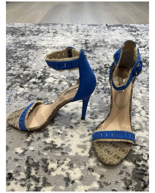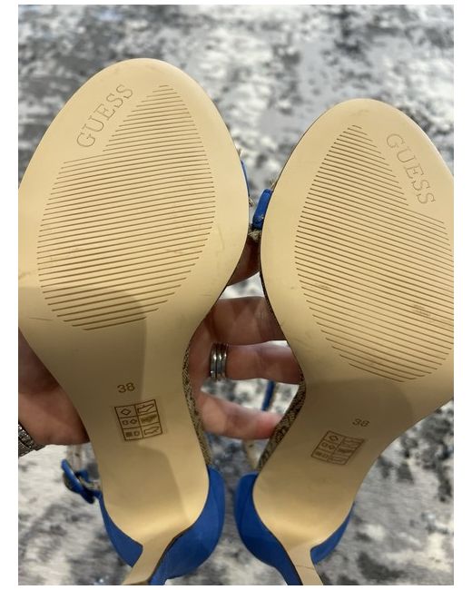 These GUESS Women's High Heels in size 5.5 UK are the perfect choice for a party or cocktail event. The blue leather heels feature a stiletto heel and a strappy design, making them stylish and elegant. With a standard shoe width, these heels are perfect for the summer and spring seasons. The buckle closure adds a touch of sophistication to these stunning heels from the renowned brand GUESS. Brand new. Never been worn. No refunds or exchanges.