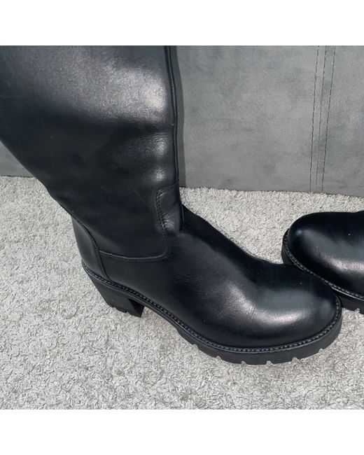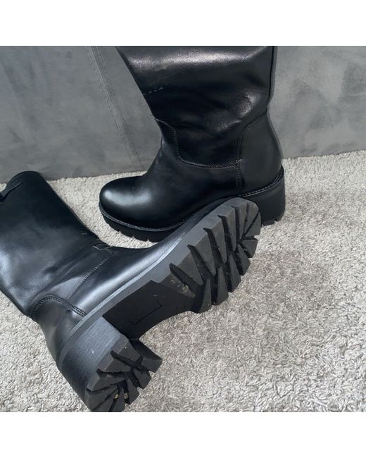These Celtic & Co. The black leather biker style boots feature a zip closure and a low block heel, making them perfect for casual occasions.