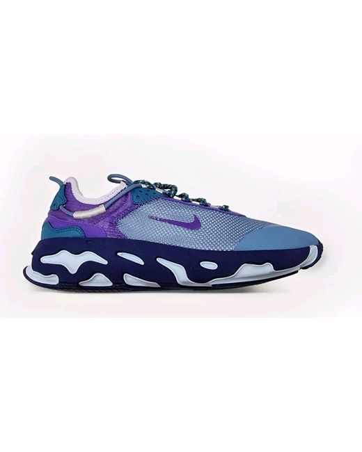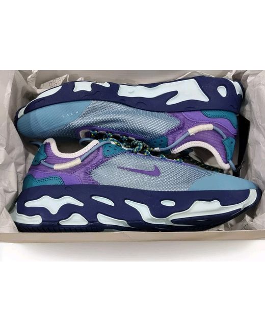 These Nike React trainers for men are in UK size 8.5. They feature a lace-up closure with a blue/purple colour scheme. Customised with mesh upper material, the sneakers have a rubber outsole. The Nike Original model is made in Vietnam and boasts the signature comfort and style associated with the brand.