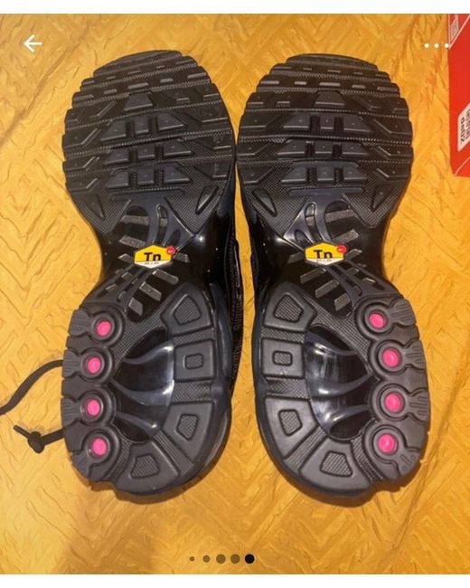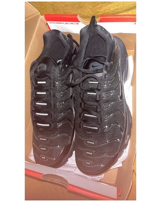 The product is a pair of Nike Air Max TN trainers in UK size 5, which corresponds to a US size 7. These stylish sneakers in black are part of the Nike Air product line, known for their comfort and performance. Specifically designed for unisex adults, these trainers are perfect for those looking for a sleek and versatile shoe option for everyday wear. The Nike Air Max TN model offers a blend of style and functionality, making it a popular choice among sneaker enthusiasts.