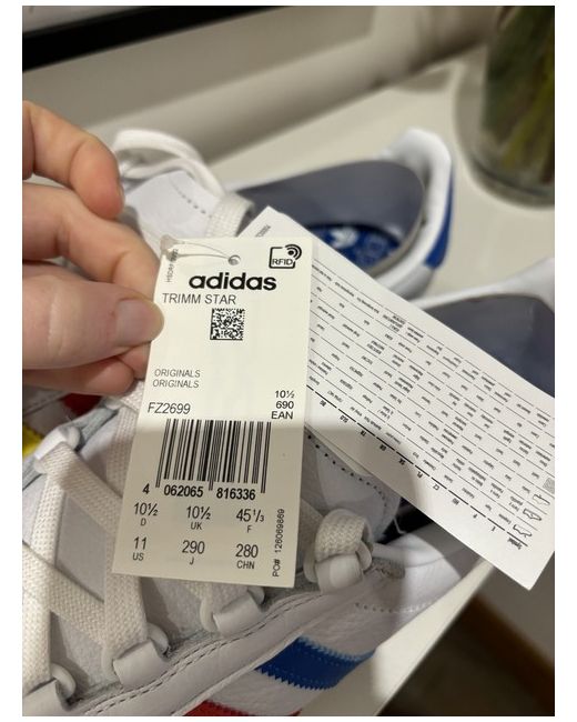 Adidas Originals Trimm Star trainers The Lost Ones - Archer White leather with blue, red and yellow stripe Size 10.5 Brand new with tags Come with original box, please note some damage to the side of box