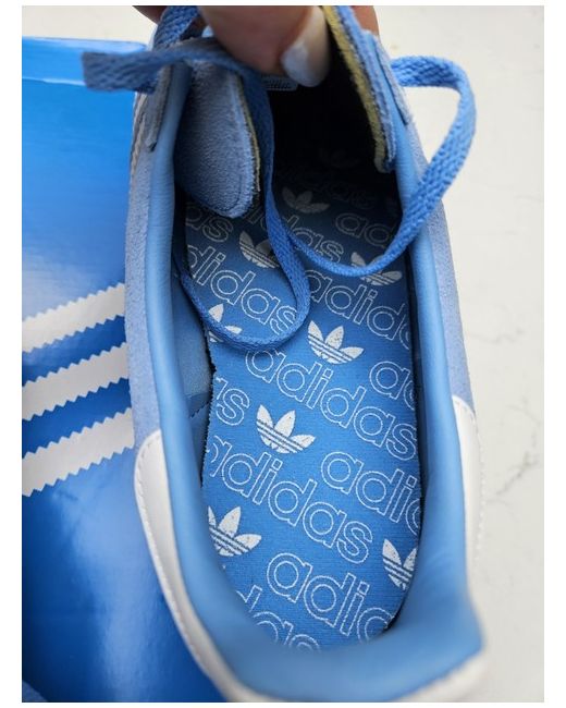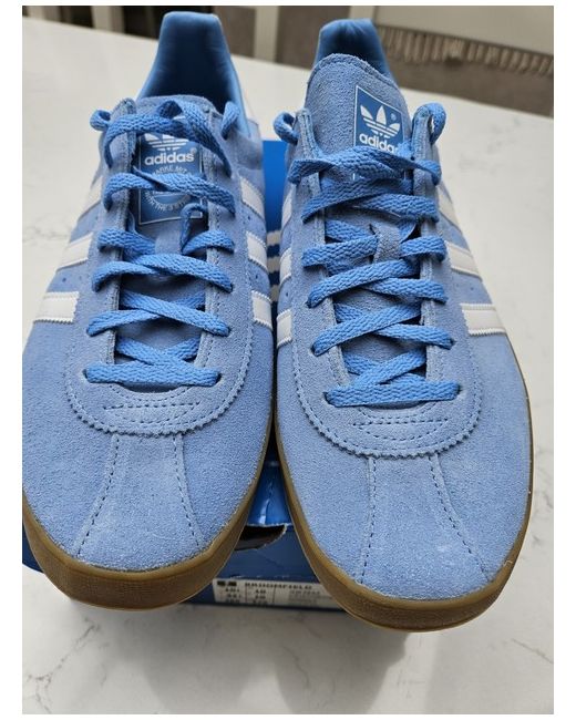 The adidas Broomfield Men's Trainers in size 10 are a stylish and comfortable choice for casual occasions. These low-top trainers feature a lace-up closure and a standard shoe width for a good fit. The trainers are made with a suede upper material and a rubber outsole, perfect for summer wear. The blue colour and sleek sneaker style make these trainers a versatile addition to any man's wardrobe, representing the quality and sporty aesthetic of the adidas brand. Made in Vietnam, these trainers are a practical and fashionable choice for everyday wear. selling some of my Adidas collection. the boxes marked in places from storage.