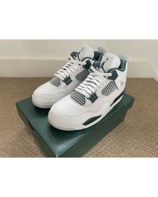 The Jordan 4 Retro Oxidized Green takes the recognizable Air Jordan 4 retro silhouette and updates it with a colorway of White and Neutral Gray with Oxidized Green accents. The use of crisp White and deep Oxidized Green on the upper gives the sneaker a retro, varsity-sports-inspired appearance.