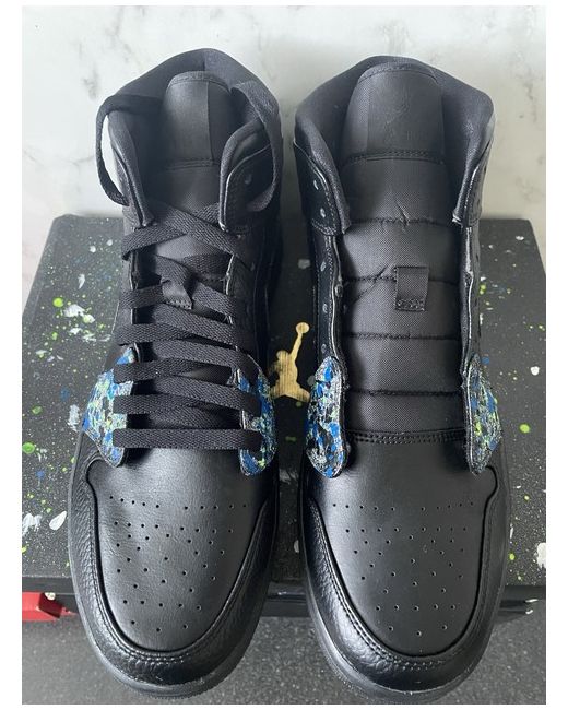 The Jordan 1 Mid Triple Black Customs are stylish mid-top trainers featuring a lace-up closure for a secure fit. Made with black leather uppers and a comfortable rubber outsole, these sneakers are perfect for casual occasions during the summer season. Branded with the iconic Jordan logo, these customised shoes are a must-have for any sneaker enthusiast looking for a versatile and on-trend option. Designed for men in a UK size 9, these trainers are a classic addition to any wardrobe.