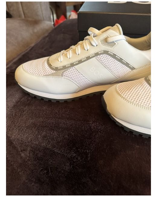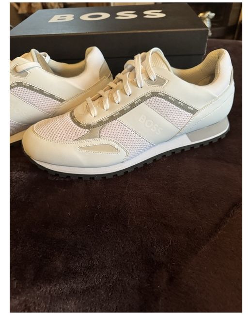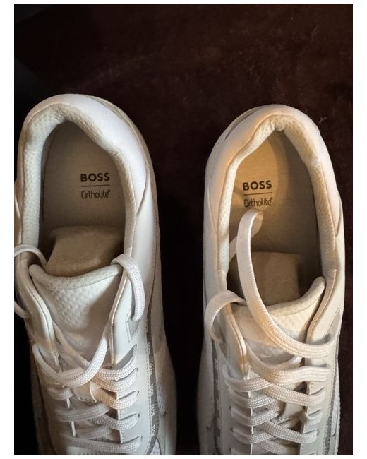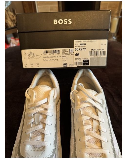 The Boss White Trainers in size 12 are a stylish and comfortable choice for casual occasions. These low top sneakers feature a lace-up closure and are made from premium leather with a rubber outsole, providing durability and a trendy look. The white colour adds a versatile touch to the trainer, making it suitable for summer and spring wear. With comfort and the signature Boss brand, these trainers are a must-have for any man looking to elevate their footwear collection.