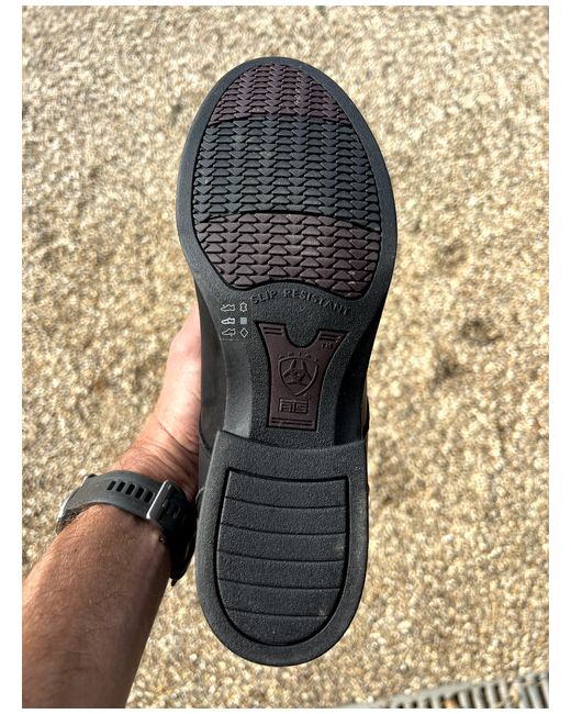The product is a pair of Ariat men's riding boots in black, designed specifically for equestrian activities. With a UK shoe size of 8 and a corresponding US shoe size of 9, these boots are durable and comfortable for long hours in the saddle. Made with quality materials, they are suitable for both everyday wear and riding, making them a practical and stylish choice for any equestrian enthusiast. Never riden in.