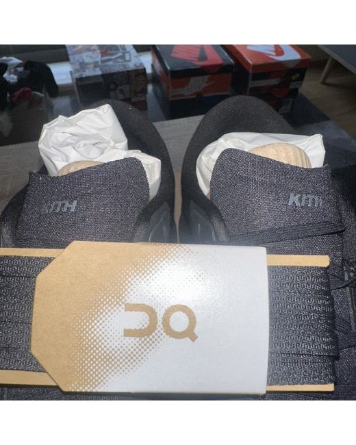 The On Running x Kith Cloudzone in black, UK size 8.5, is a stylish and high-performance sneaker collaboration between two iconic brands. The shoe combines the signature comfort and durability of On Cloud with the unique style and design elements from Kith, resulting in a versatile and sleek sneaker suitable for various activities and occasions. The collaboration between these two brands ensures a product that is both fashionable and functional, catering to the needs of both casual wearers and athletes alike.