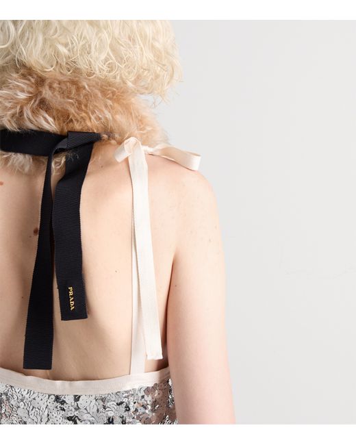 Prada presents your next party dress with this silver-tone, sequin-embellished design. With a slip silhouette that's alluded to by the relaxed V-neck and silky bow-tied straps, it sparkles spectacularly every time the fabric catches the light.