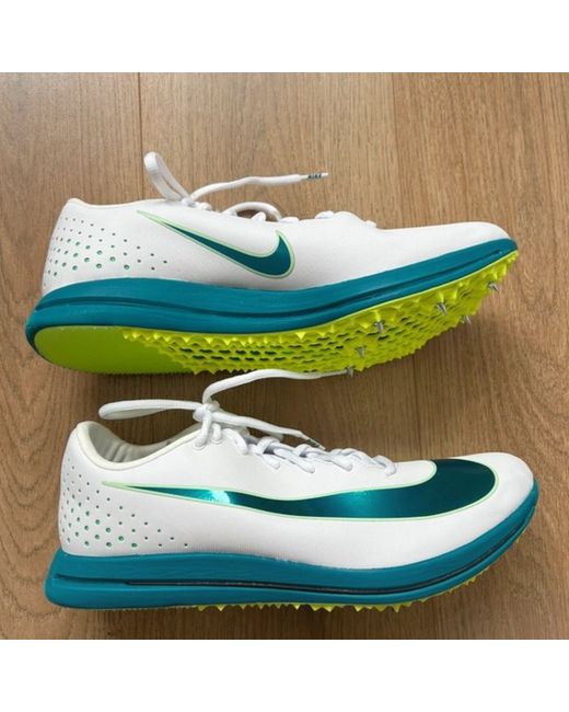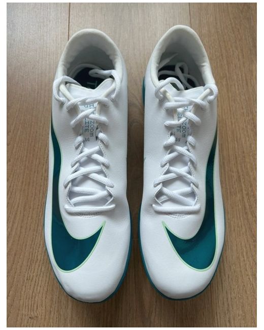 The Nike men's Spikes are a stylish and functional pair of trainers designed for sports enthusiasts, specifically for track and field events. Featuring a low top design with lace-up closure, these shoes come in a classic white colour with the iconic Nike branding. The spikes on the sole provide excellent traction, making them perfect for outdoor activities during the spring season. Made with synthetic upper material and standard shoe width, these Nike Spikes offer comfort and durability for your active lifestyle.