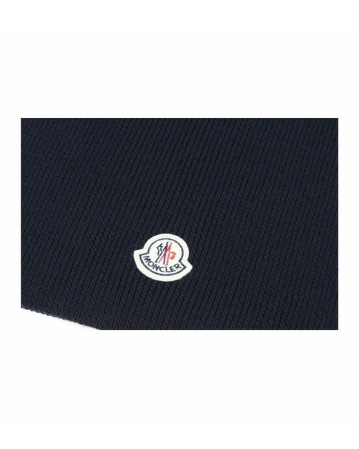 Here we present, Moncler's navy blue knit scarf. Crafted in pure virgin wool to give you the warmth and comfort. It features the signature ribbed logo on the front. Moncler knit scarf. Woven logo patch to the front.
