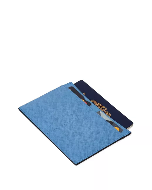 blue textured leather two card slots single passport pocket slim design stitch detailing