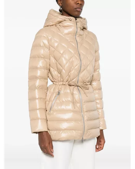 light camel diamond quilting hooded neckline front zip fastening front zip fastening pockets drawstring waist