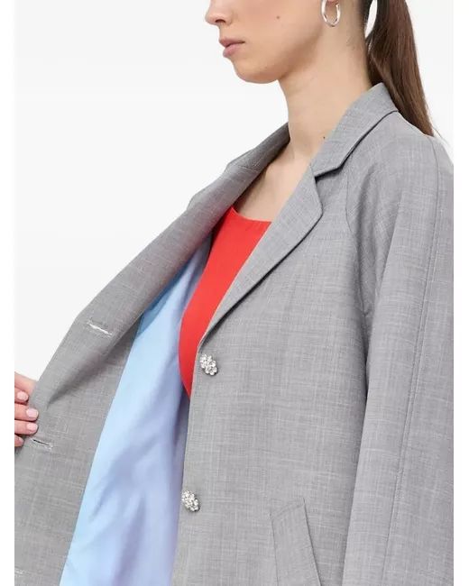 grey belted waist crystal embellishment buttons notched lapel long sleeves straight hemline
