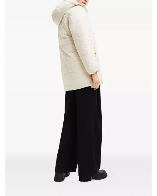 white lettering-motif quilting detachable hood hidden snap-button and zip fastening long sleeves