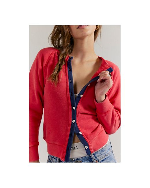 Our favorite graphic cardi gets dialed down to the perfect solid silhouette. Sweet floral buttons and the perfect relaxed fit make this cardi-inspired sweatshirt a must-add to your collection. * Cotton terry fabrication * Crew neckline * Button-front closure * Raglan sleeves * Colorblocked design Junior Solid Sweatshirt Cardi at Free People in Varsity Combo, Size: XS