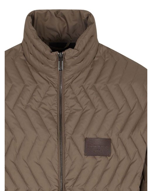 dark beige chevron quilting zip front fastening high neck long sleeves branded patch