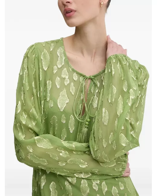green jacquard animal print neckline tassels long sleeves