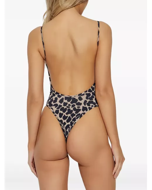 beige leopard print scoop neck thin straps low back Be mindful to try on swimwear over your own garments.