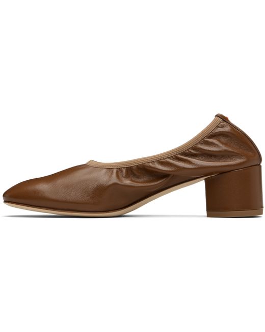 Grained nappa leather ballerina-style heels. · Elasticized collar · Red stitch at heel tab · Suede interior · Covered block heel with rubber injection · Nubuck sole · Heel: H2 Supplier color: Tobacco