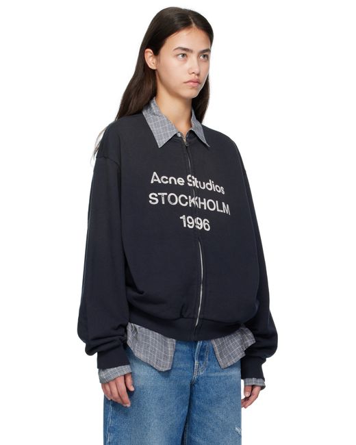 Organic cotton-blend fleece sweater. · Garment-dyed · Rib-knit stand collar, hem, and cuffs · Zip closure · Logo and text printed at front · Dropped shoulders Supplier color: Black