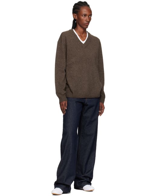 Knit yak sweater. · Rib-knit V-neck, hem, and cuffs · Dropped shoulders Supplier color: Marron chine