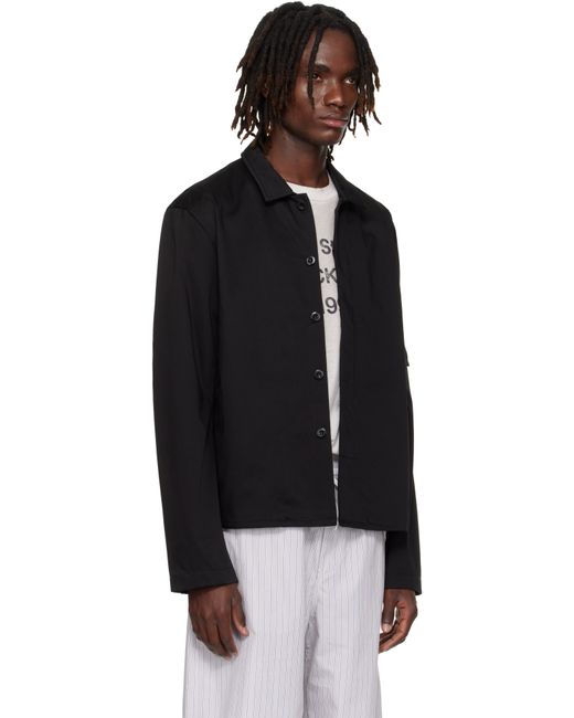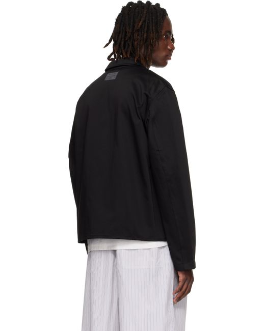 Heavyweight organic cotton satin jacket. · Spread collar · Button closure · Seam pockets at waist · Flap pocket at sleeve · Logo patch at back collar Supplier color: Black
