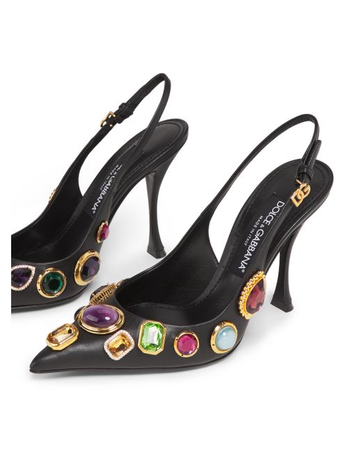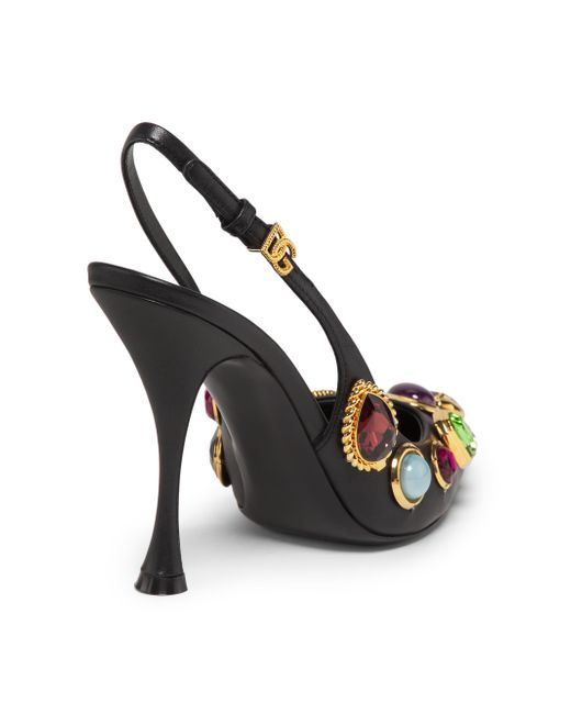 Crafted of soft lambskin leather, these Dolce & Gabbana slingback pumps are adorned with large multicolor set rhinestones. A goldtone D & G logo buckle finishes the strap. Pointed toe Buckle strap Leather upper Leather lining Leather trim Rubber sole Made in Italy ABOUT THE BRAND Mediterranean-inspired prints and luxe silhouettes are mainstays of the Italian label, launched in 1985 by Domenico Dolce and Stefano Gabbana. The eye-catching line includes a lineup of sleek clothing and maximalist shoes and handbags. Women's Shoes - D & G Womens Shoes > Dolce & gabbana > Saks Fifth Avenue. Dolce & Gabbana. Color: Black Multicolor. Size: 6.