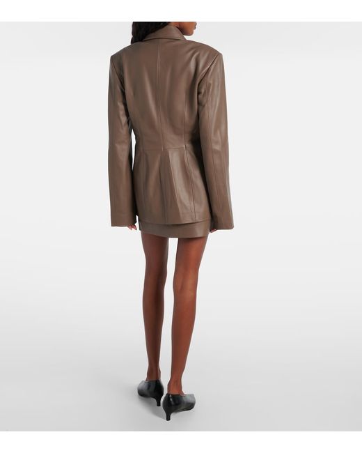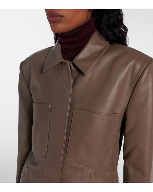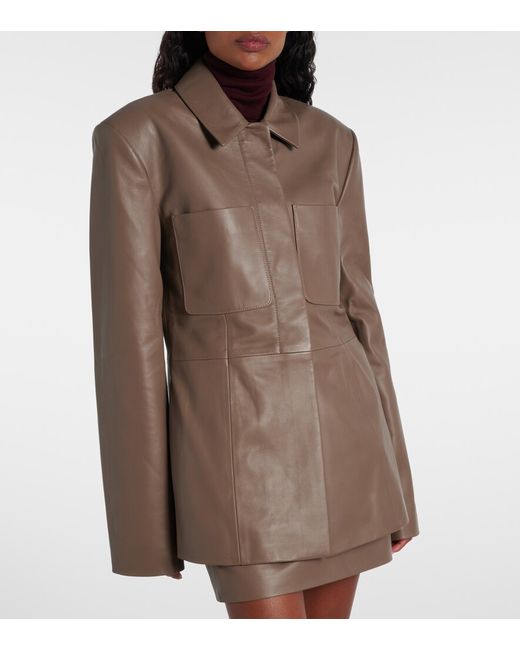 Material: 100% leather. Care instructions: specialist clean. Made in the UK. Designer color name: Taupe. Item color: gray. Lining: 100% viscose. Closure: concealed buttoned front. Pockets: breast pockets. Leather.