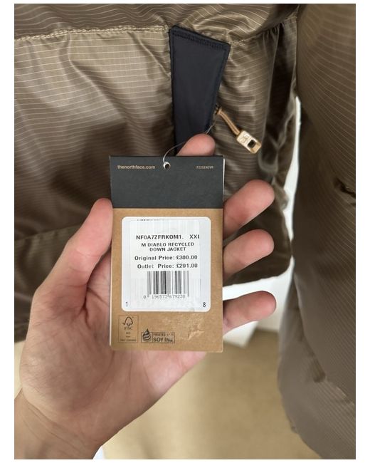 Brand new with tags Men’s The North Face Diablo Recycled Down Puffer Jacket Size: XXL Colour: Almond Butter/Black (golden brown) Elastic cuffs Adjustable at bottom of jacket No hood 700 on cuff insulation 2 front zipped pockets 1 zipped inside pocket Logo on the front and back Logo on the zip Beautiful pattern on the inside of the jacket (leafs) Recycled Down: This jacket is insulated with recycled down that has been sorted for quality and cleaned just like our RDS-certified down. DWR: Durable water-repellent finish Please message for more info