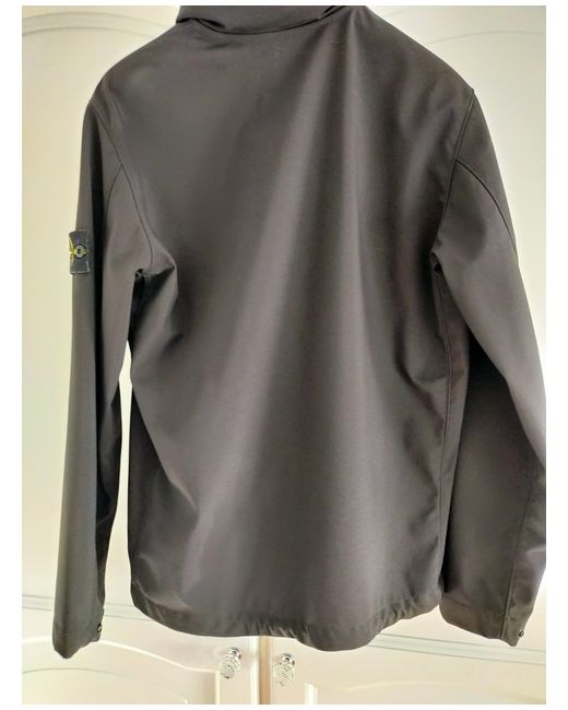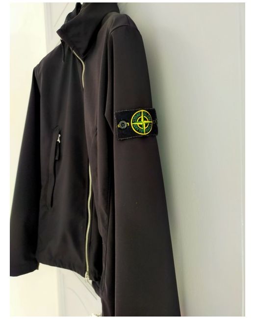 This Stone Island men's jacket in size medium is a stylish and practical choice for casual wear during the winter season. Made from polyester with a softshell fabric type, this black jacket features a zip closure and a regular fit. The design incorporates the brand's logo as accents, adding a touch of designer flair. The addition of down insulation ensures warmth, making it ideal for walking and everyday activities. Made in Italy, this windbreaker jacket is both fashionable and functional, perfect for the modern man looking for a quality outerwear piece.